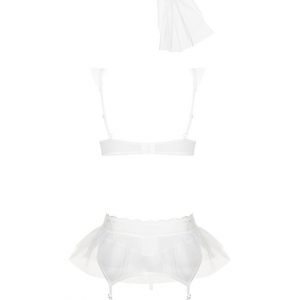 - czteroczęściowy, biały komplet wykonany z siateczki i ozdobnej koronki
