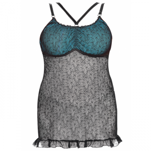 Szalenie dziewczęca i subtelna haleczka w z dodatkiem turkusu. Delikatna półprzezroczysta koronka w kolorze czarnym dodaje nieco romantycznego akcentu.