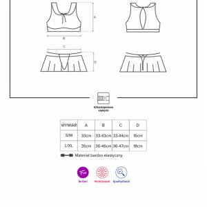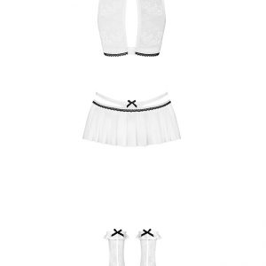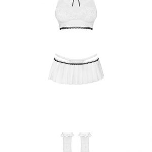 - zestaw zawiera top, spódniczkę ze stringami skarpetki