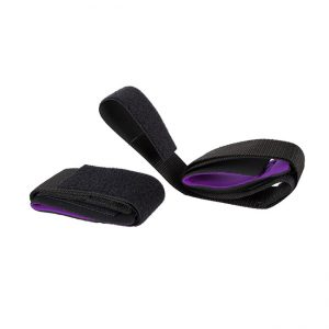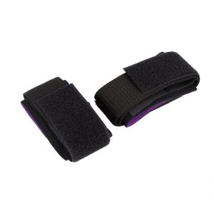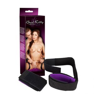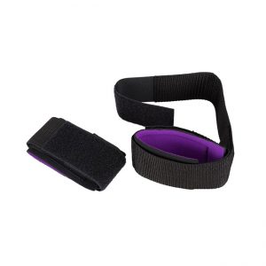 Softly padded hand and thigh cuffs with Velcro fasteners. Length handcuffs 30 cm, length thigh cuffs 58 cm. Colour: black/purple. Material: polyamide.