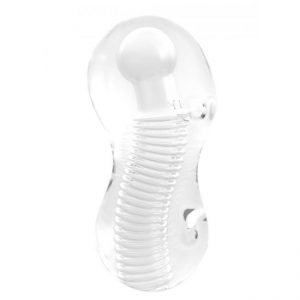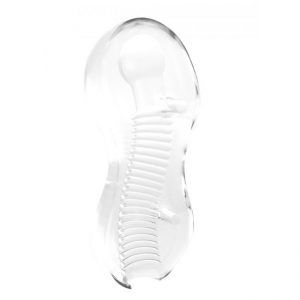 The Wave Sucker ma falisty kształt, który zapewnia doskonały uchwyt i przyjemność w dowolnym miejscu. Ta zabawka ma pomarszczoną teksturę od wewnątrz i jest wykonana z elastycznego, realistycznego w dotyku materiału. Ta zabawka jest przezroczysta dla dodatkowego wizualnego podniecenia. Zabawka ma 2 otwory na wibrujące pociski, dodając dodatkową stymulację. (Pociski są sprzedawane osobno).