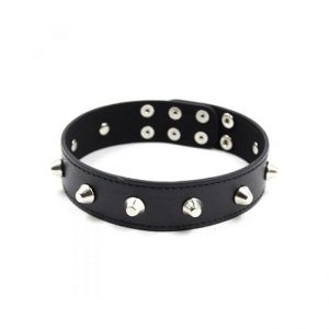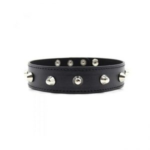 Obroża ze skóry z ćwiekami i kolcami. Dzikość skóry i chłód metalu razem: przyjemność i ból dla miłośników BDSM. Nie ma hamulców dzięki linii Toez4Lovers Fetish Art!