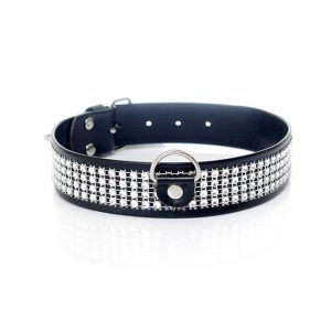 Ekskluzywna obroża z kryształkami w kolorze srebrnym z wytrzymałej skóry ekologicznej delikatnej w dotyku, dzięki czemu jest wygodna w noszeniu. Obroża jest regulowana w zakresie od 36 – do 42 cm. Aby uzyskać bardziej kontrolowaną grę, możesz użyć pierścienia O-ring na kołnierzu, aby dołączyć smycz (brak w zestawie). Stwarza to nieskończone możliwości i pozwala na kreatywne i osobiste doświadczenie niewoli.