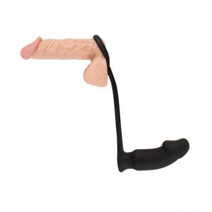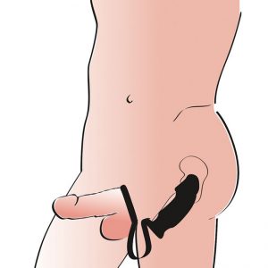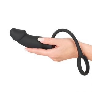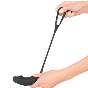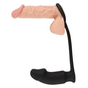 Czarny pierścień z wibrującą wtyczką. Dildo: ok. 13 cm długości, Ø 3,9-4,2 cm. Pasek połączeniowy ok. 14 cm długości. Pierścień Ø 4,5 cm. Materiał: silikon, kula: ABS, bez ftalanów zgodnie z Rozporządzeniem UE REACH.