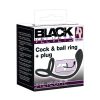 Czarny pierścień z wibrującą wtyczką. Dildo: ok. 13 cm długości, Ø 3,9-4,2 cm. Pasek połączeniowy ok. 14 cm długości. Pierścień Ø 4,5 cm. Materiał: silikon, kula: ABS, bez ftalanów zgodnie z Rozporządzeniem UE REACH.