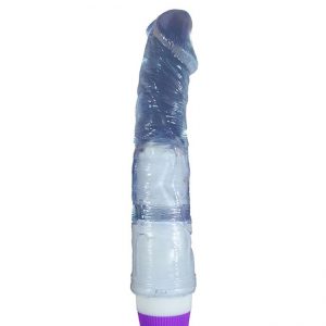 Wibrator żelowy 7′ przeźroczysty z regulacją prędkości wibracji. Długość całkowita 20 cm Długość wału 18 cm Średnica 3,7 cm Typ baterii 2 baterie AA Wymiary opakowania 6 x 6 x 25 cm Waga w opakowaniu 0,27 kg.